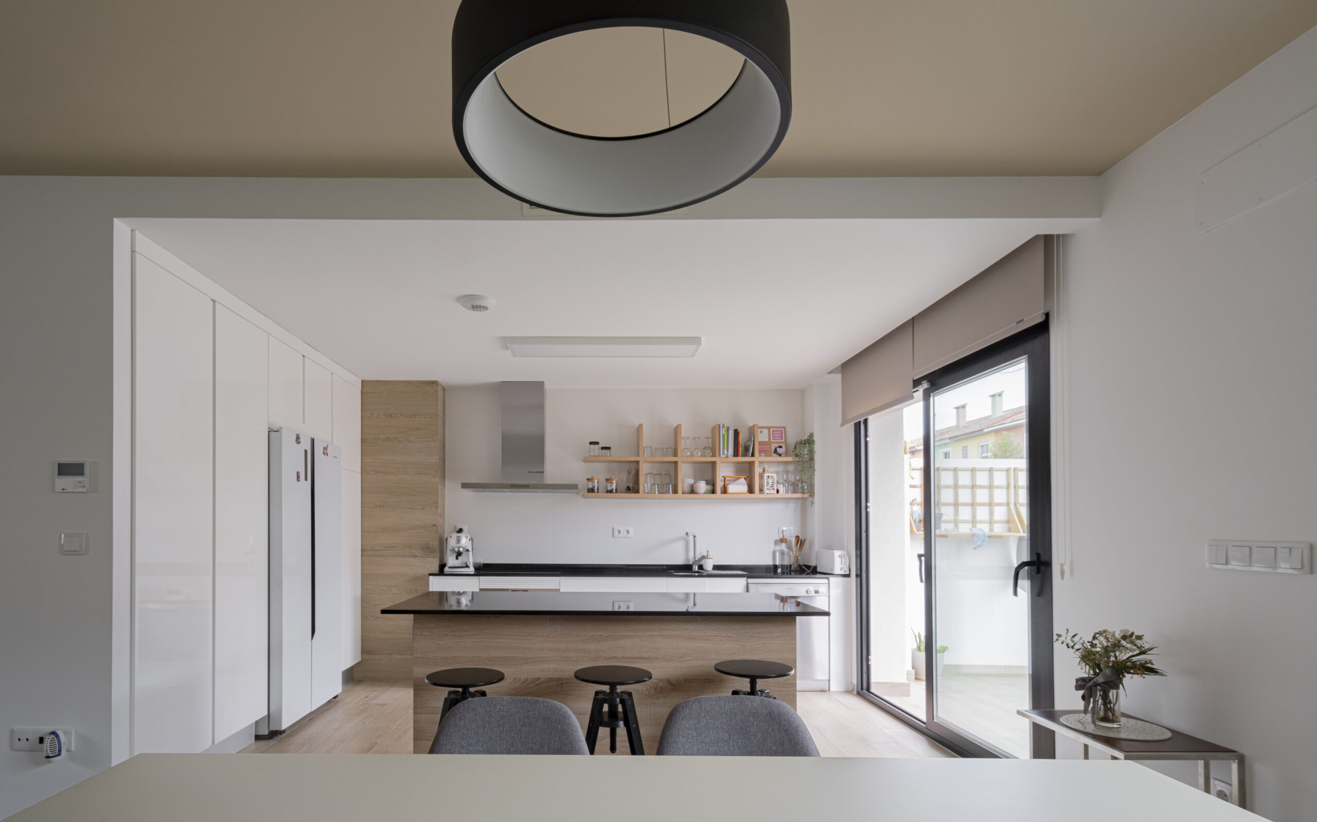 A one family Housing Unit has been designed adjusting to the wish list of the clients, including a skylight over the staircase.